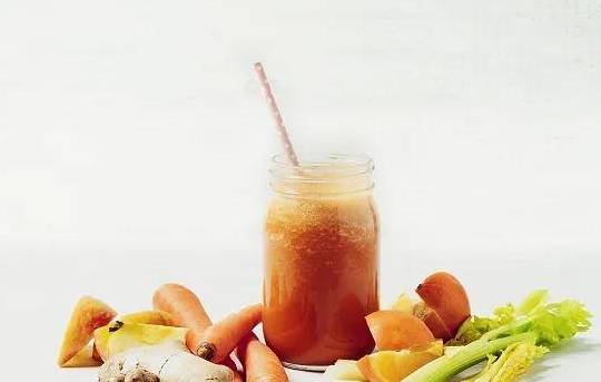 芹菜和胡蘿卜富含膳食纖維,吸水性強,是腸道中的“充盈物質”,可加強腸道蠕動;蘋果在中醫上主治消化不良、便秘等病癥。另外,其富含果膠,可增加飽腹感,促進腸道蠕動,一起榨汁會有不錯的清腸效果。