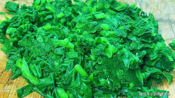 第二步:鍋中放入適量的水,大火將水煮沸後,把面條菜放入到鍋中,大火將面條菜焯水2分鐘後撈出,然後將面條菜放入到冷水中浸泡著,這樣可以防止面條菜發黃,等面條菜完全冷卻後,將面條菜撈出,切成碎末即可備用。