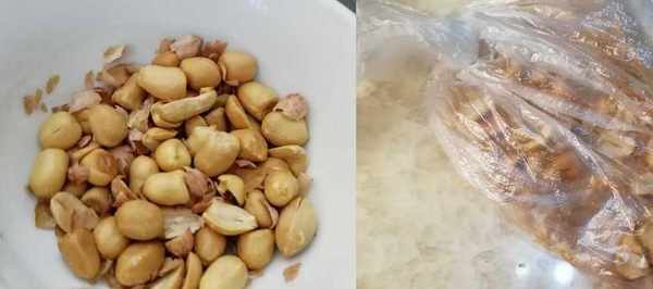 而花生米炒香後去皮後,碾成有顆粒狀的碎渣。