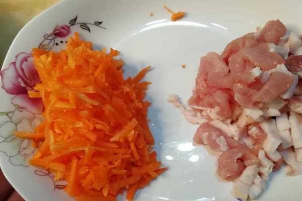 五花肉切絲,胡蘿卜擦絲;