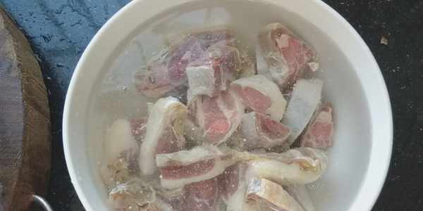 第一步:先準備兩隻臘鴨腿,洗淨表面的髒東西,再把它砍成小塊,然後放到熱水中浸泡,大概泡20分鐘,中間換兩次水,因為臘鴨腿比較鹹,一定要泡一下,不然就沒法吃了。泡好後再抓洗兩遍,然後瀝幹水分備用。