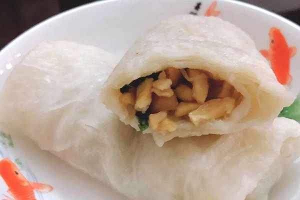 大埔筍粄榮獲“中華名小吃”和“廣東客傢名小吃”的稱號,它最具代表性的大埔美食之一。大埔筍粄主要包括粄皮和內餡兩部分,粄皮以木薯淀粉為原料制成薄薄的圓形粄塊,內餡以切碎的半肥瘦豬肉及竹筍為主,配上蝦米、魷魚、香菇丁等,吃的時候一般還要加入特制的蒜香蘸料。