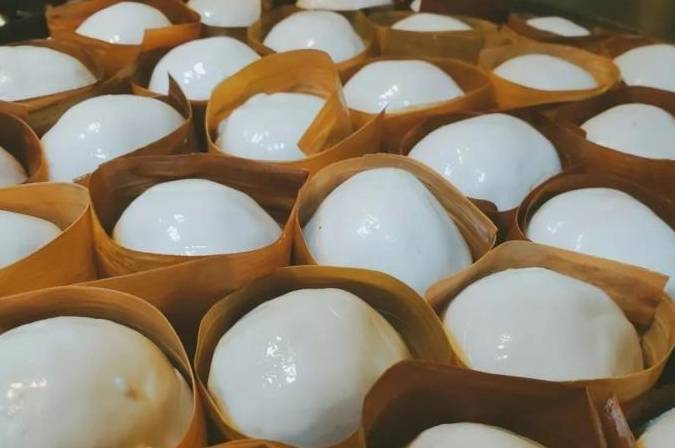 大埔憶子粄是廣東大埔地方傳統名點,屬於粵菜系客傢菜,至今已有300多年的歷史。憶子粄為乳白色,造型別致,像茶盞一樣,隻有頭露出來,四周都被包裹得嚴嚴實實,因為是用糯米制成的,口感黏韌。