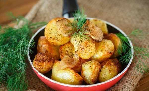 4.土豆放入油裡煎,煎至金黃。