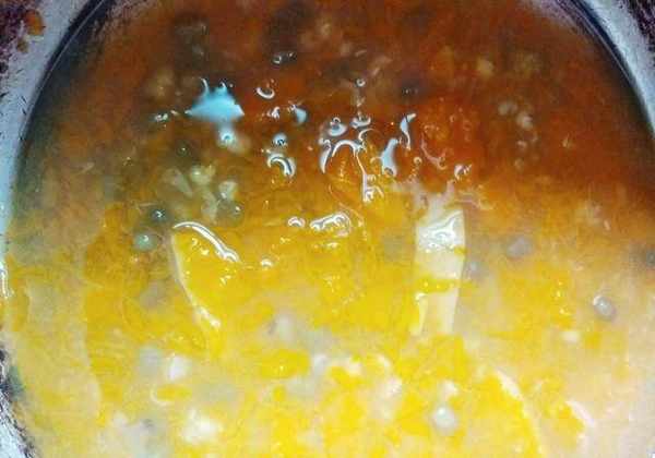 3.倒入水,加蓋煮滾,加入南瓜泥,加入雞粉和鹽調味,撒上蔥花即可。