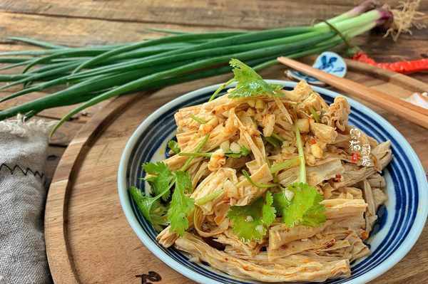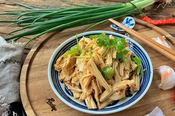 【涼拌腐竹】?食材:幹腐竹1把,蒜末少許,香油1茶匙,生抽1茶匙,陳醋(或白米醋)2茶匙,香菜少許,鹽2克。