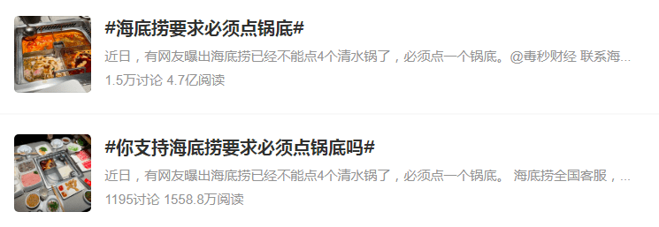 近日,#海底撈要求必須點鍋底#這一話題登上瞭熱搜。