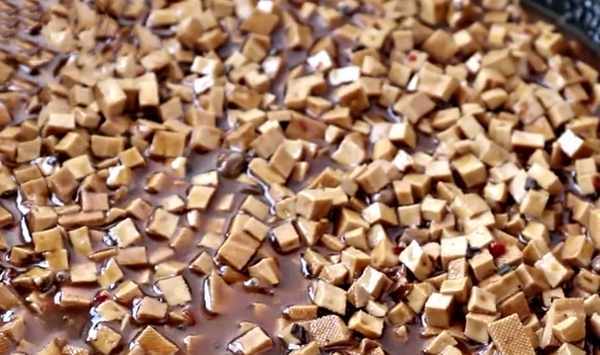 下麵在鍋裏倒上油,把八角、香葉放進去炒出香味,把香料炒到顏色發黃,都撈出來,再加上蔥花翻炒一下,炒出香味後,加上一勺豆瓣醬、一勺甜麵醬、一勺黃豆醬炒出紅油,再加上豆干、生抽、醬油翻炒均勻,再加上沒過食材的清水,先開大火煮開後,轉到小火煮6分鐘,加上點食鹽、五香粉調味,再燜煮5分鐘關火。
