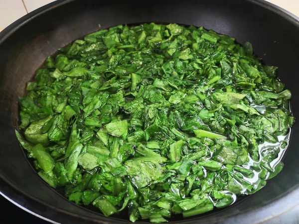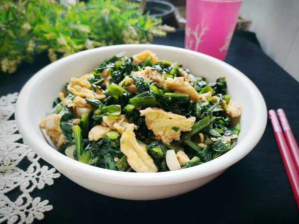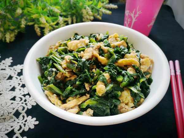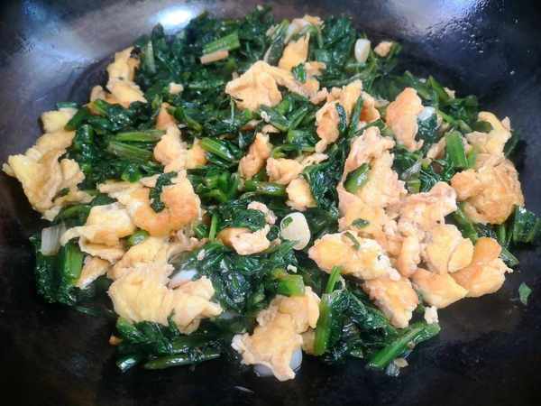 食材:萵筍葉、雞蛋、大蒜、小蔥、鹽、蠔油。