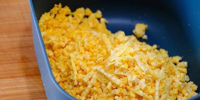 1、玉米清洗幹凈,把玉米粒摘下來用刀剁碎。