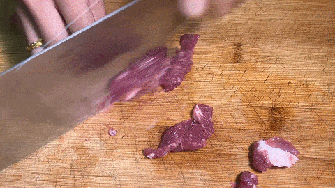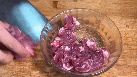 7. 切好的肉片放入小碗中,加入食鹽,生抽,料酒