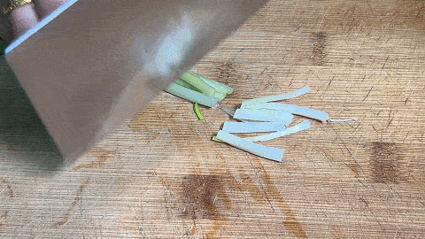 2. 小蔥洗凈切成蔥段,切好和蒜片放一起