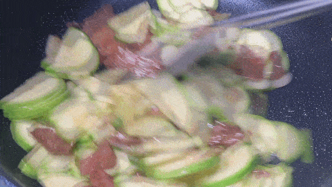 12. 爆香之後倒入西葫蘆片翻炒