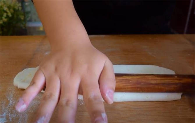 8.咱們取出來一根長條,把周圍稍微的捏一捏。