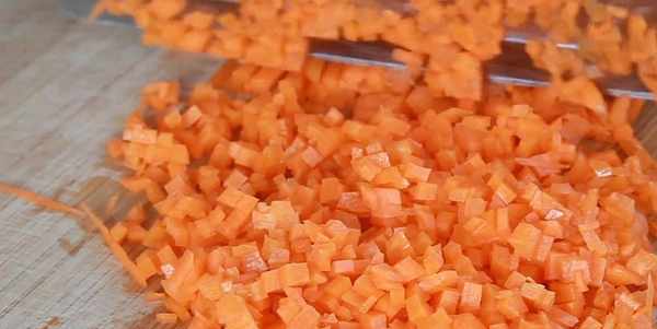 4.蓮藕也同樣切成小碎末。不要太大顆粒,不然吃著沙沙的。
