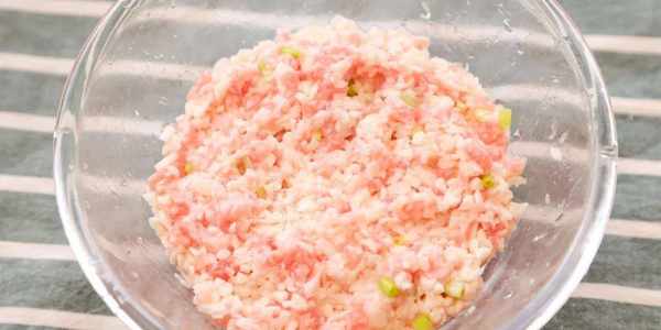 2.加入肉末、蔥花、鹽,攪拌均勻。