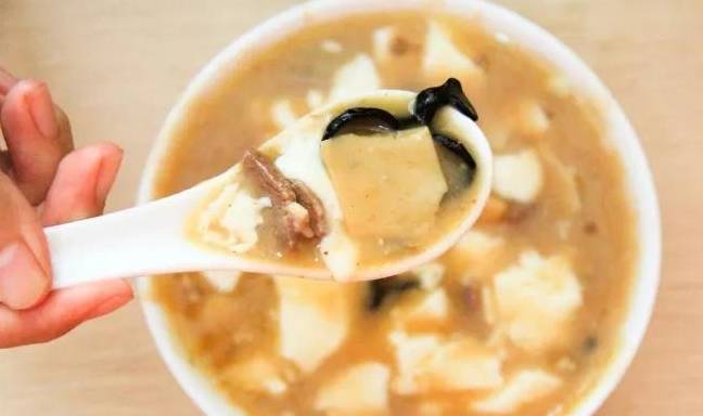 選東北秋耳、風幹香菇、優質面筋搭配底湯。底湯也不一般哦,采用的是熬制4小時以上羊骨湯,噴香濃鬱。一碗胡辣湯裡真的有很多肉哦!一開始就跟底湯熬煮,所以非常入味。