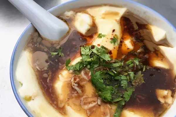 輕輕攪拌,那股嫩滑感就能感受得到。入口後,緩緩流動在唇齒間的豆花沒有絲毫豆腥味,各式配料讓這份細膩與入口即化變得一點都不單調。