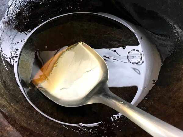 2、紅燒類燉菜時,宜事先炒出糖色,使菜肴成色更加美觀,冰糖倒在油鍋裡用小火翻炒至呈紅褐色。
