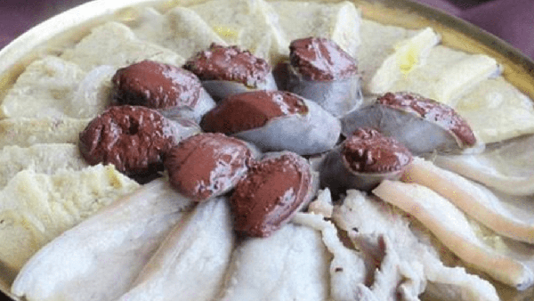 說完這道用鴨血做的美食, 咱們再來一道:豬血汆白肉,這是一道經典的東北菜!