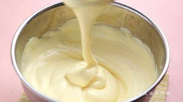 4,蛋白霜分2次和蛋黃糊混合均勻,手法要輕柔以免消泡哦。