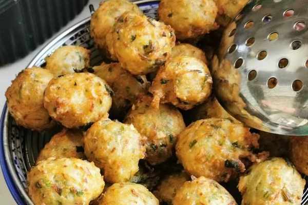 炸蘿卜丸子,蘿卜要用得多一點,另外還要另些香菜,這樣可以給丸子餡提香。另外面糊要調得稠一些,像揉面一樣把蘿卜餡料與面粉充分混合均勻,還要經過醒發再來炸,這樣炸出來才會暄軟蓬松好吃。