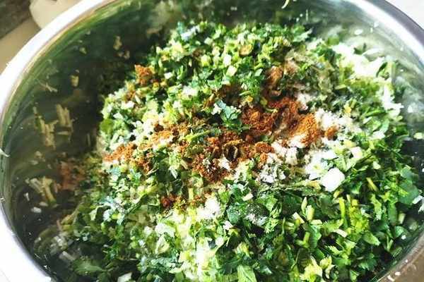 準備材料:青蘿卜4個,香菜1把,花生油1000克,面粉1000克,鹽1.5勺,五香粉5克,蔥1棵,薑1塊