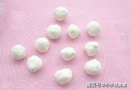 第二步,如果不熱,用手揉成光滑的面團,然後放在案板上,揉成長條,然後切成中等大小的面團。取一塊面團揉成小球;
