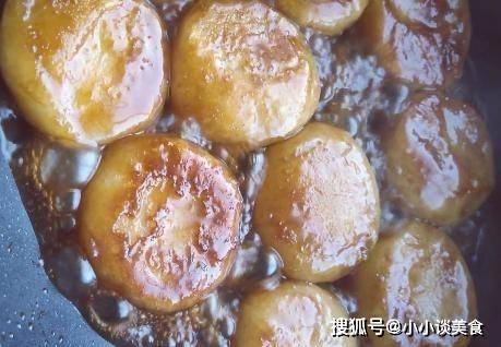 3、糯米糕不要做的太大。它有點小。味道更好。糯米糕必須先烤到外皮變硬,然後再用紅糖水煮。紅糖水可以濃一點,一點效果更好。