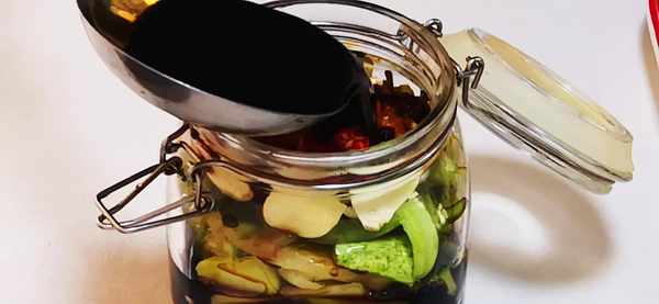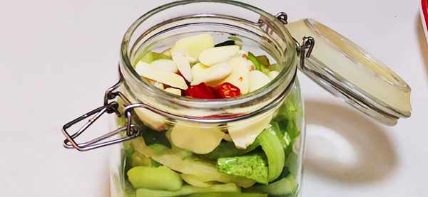 5、將控幹水分的黃瓜放入一個無油無水的罐子裡,再放點蒜片,薑片,小米椒圈,然後再倒入涼透的醬料汁,最後再放點高度白酒,這樣黃瓜儲存的時間會更長。密封保存起來,放入冰箱保鮮裡存放,一到兩天就可以吃瞭。黃瓜這樣做是不是很簡單,0小廚也能做出來,這樣做的黃瓜清脆爽口又好吃,能從夏天吃到春季,隨吃隨拿特方便。