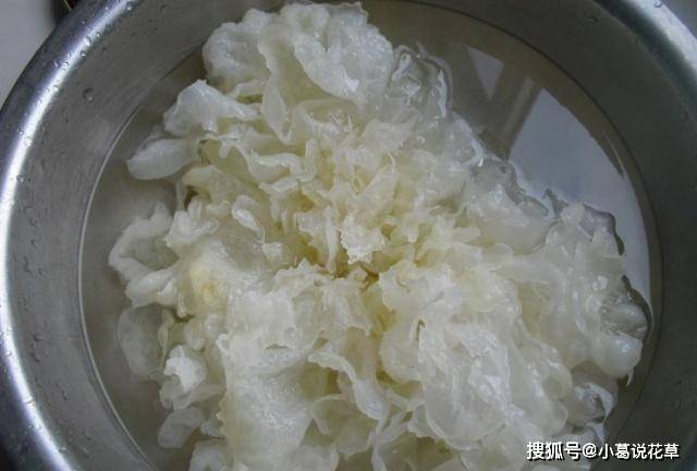 第一步:準備一個大碗,將白海綿放入碗中浸泡,白海綿浸透後,切掉舊的部分,然後將白海綿撕成小塊。白蘑菇做好後,準備在鍋裡倒入適量的水,將白蘑菇放入鍋中煮,先用大火燒開水,再轉小火慢慢煮。水在沸騰。