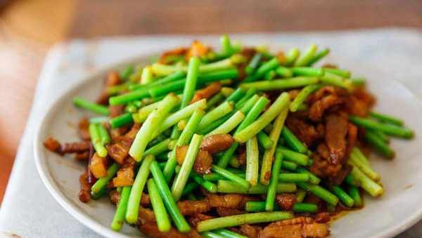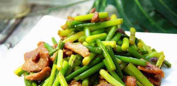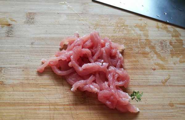 1.首先準備新鮮的蒜苔200克放在清水中洗凈,然後給它切成三厘米左右的長段放入碗中。豬裡脊肉切成厚厚的薄片最後給它切成細絲。