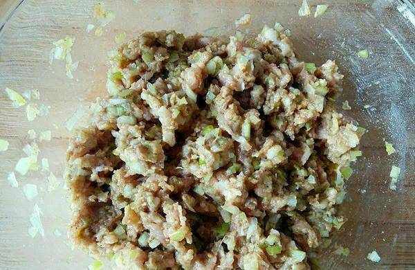 3.300克的面粉往裡面加入100毫升的清水,先用筷子攪拌成絮狀再用手揉成光滑的面團。這個時候茴香苗已經控幹水分瞭,然後給它切斷切碎直接放入肉餡裡面,再放入少許的精鹽調味就可以啦。