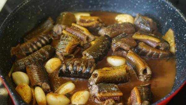 準備食材:黃鱔、蔥蒜、薑精鹽、老抽、食用油、料酒。