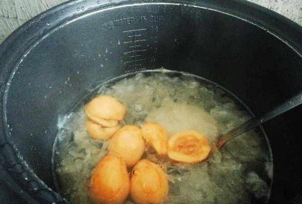 第四步:將銀耳放入鍋中,加入適量的水,先用大火煮一會兒,再用小火煮30分鐘。放入鍋中,蓋上鍋蓋一起煮。為瞭更溫和地煮白蘑菇,您需要煮一會兒。又烤瞭30分鐘,鍋裡加入冰糖烤!