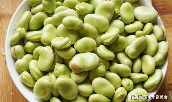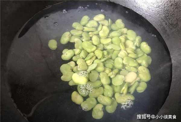 2、鍋中加入適量的水。大火燒開後,加入適量食用油和鹽(目的是讓蠶豆保持綠色),然後將洗凈的蠶豆放入水中焯2-3分鐘,待鍋中撈出蠶豆8成熟後,放入冷水中冷卻,最後瀝幹備用。