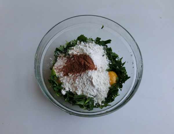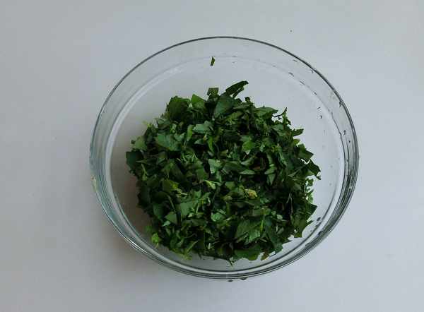 做法:1、先擇下嫩莖葉,然後洗凈,切碎備用。