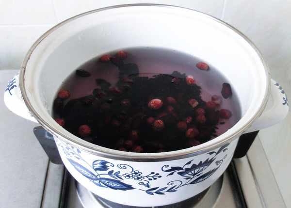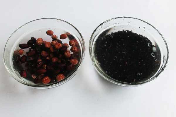 材料:黑米80克,花生30克,紅蓮子20克,紅棗8個。