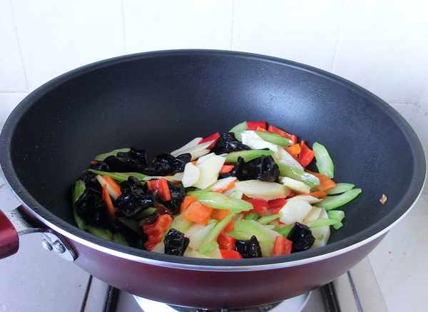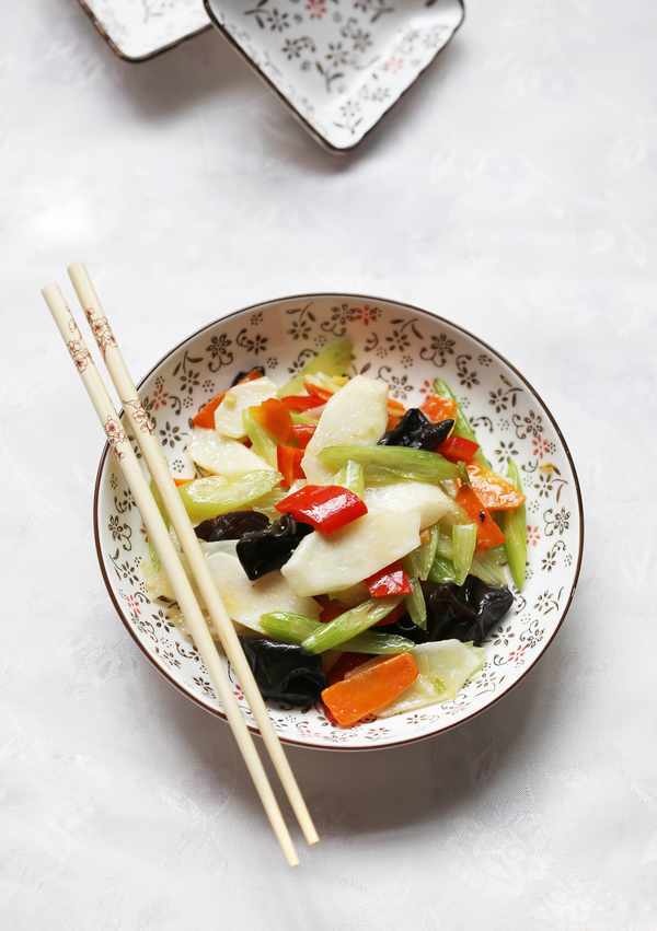 材料:山藥200克,胡蘿卜30克,芹菜50克,幹木耳3克、紅椒50克。