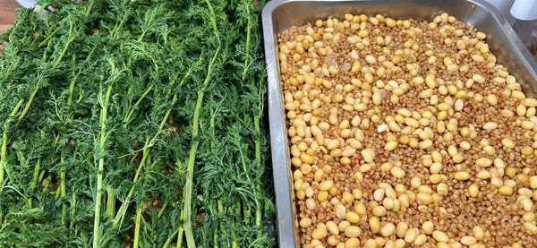 第三步:發酵,把小麥和黃豆平鋪到無油無水的不銹鋼盤子裡,千萬不能沾生水哦,那樣容易變質!厚度大約5厘米就可以,然後上面蓋上麥蒿!麥蒿的作用是防止蚊蟲叮咬、產卵,艾草也可以,這種草氣質很大,可以驅趕蚊蟲,蓋嚴實後放到溫度高,不被太陽直曬的地方,中間不要翻動。