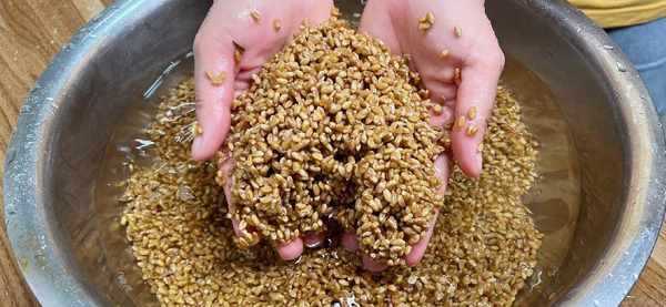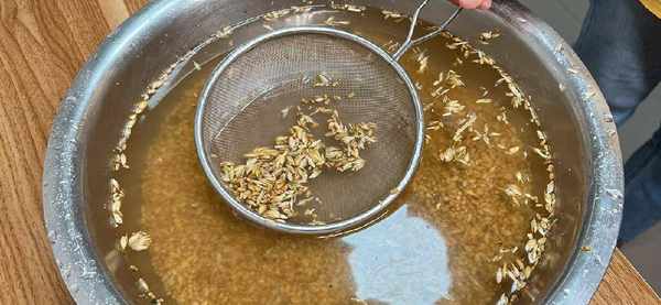 第一步,清洗,小麥用水淘洗幹凈,麥糠用漏勺清理幹凈,雙手使勁搓一搓麥子,洗去灰塵。如果有沙子或者小石子也要撿幹凈。
