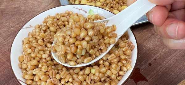 煮熟的小麥可以單獨當主食食用,麥香味很濃鬱,我突然覺得不用吃饅頭瞭,買一些這樣的新鮮小麥,每天煮著吃也不錯,還含有麥皮,膳食纖維多,更營養美味呢,煮好的麥子我盛瞭一大碗,越嚼越香。真的很好吃哦。