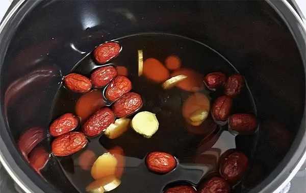 十分鐘之後,打開蓋子就可以聞到一股濃濃的生薑味瞭,接著把紅棗放進去,將火轉為中小火,慢慢地熬上20分鐘。20分鐘之後再打開,紅棗的清香與生薑的香氣融合在一起,聞起來暖暖的,經常喝上一兩杯,可以去除體內的濕氣,還可以讓氣色變得更好,非常適合想要管理身材的朋友。