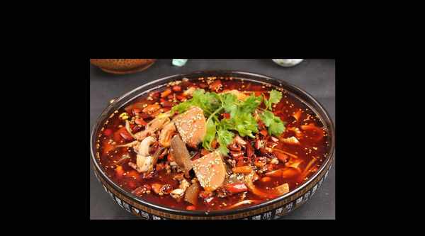 1.將水煮肉專用醬,水煮肉專用調味粉和水均勻的調制在一起燒開形成湯料待用