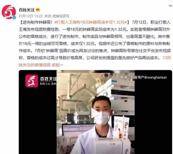 昨天,職業打假人王海發佈視頻稱“據檢測,一根18元的鐘薛高實際成本為1.32元。”鐘薛高又雙叒叕登上熱搜。加上“鐘薛高憑借一己之力拉高雪糕價格”普遍認知,“刺客”的出現,鐘薛高難辭其咎。畢竟,高價雪糕在各大便利店冰櫃裡躺著最多的,正是鐘薛高。