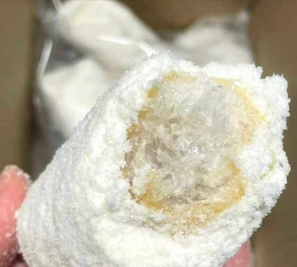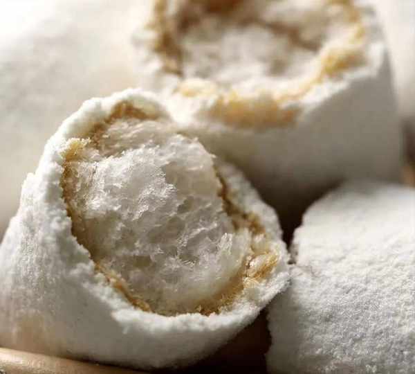 雪棗不是真正的棗而是用糯米做成的糕點,需要適當的糯米和黃豆粉,攪拌在一起調配均勻,然後下油鍋炸到外酥裡美就撈起來,這個時候裡面已經鏤空,吃起來很脆爽而不會油膩,裹上一層薄薄的白色外衣就更誘人瞭。