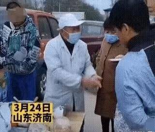 大爺聽到男子說買一斤,立馬拿起刀要切,男子再次提醒瞭大爺自己隻要一斤。