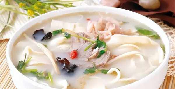 用這種寬又軟滑筋道的面條搭配上用羊肉、羊骨熬出來的高湯,再搭配上海帶絲、豆腐絲等配料,可以說一碗面中葷、素、湯、菜都有瞭,吸溜著吃真叫愜意。