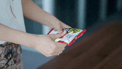 還記得以前小孩子們最喜歡幹吃它,一般都是先把面餅捏碎,再撒上調料包,然後握著開口處使勁搖晃,混勻後吃著真香。
