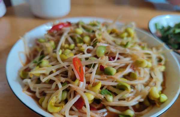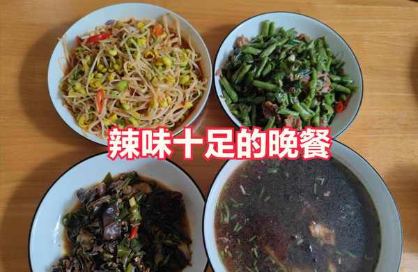 接下來老媽又端瞭4個菜放在桌子上,有豆芽,豆角炒肉,黑木耳炒辣椒和紫菜豬肉湯,特別是那碗清炒豆芽,讓四川同事感到食欲全無。